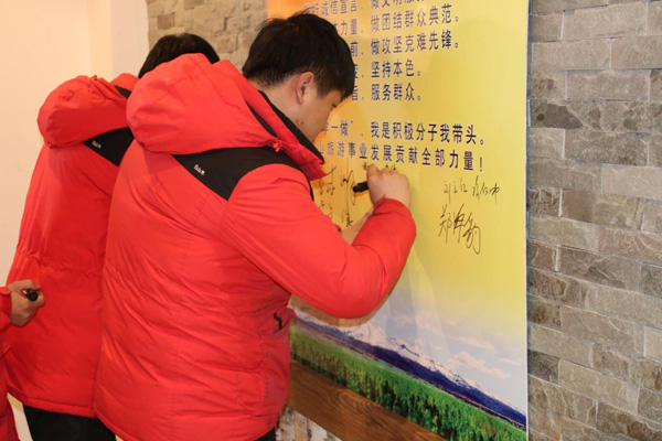 在長白山北景區(qū)黨支部積極分子都慶的帶領下,進行了“我是積極分子,我?guī)ь^”宣誓活動。