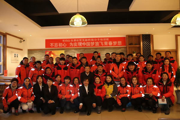 為了切實做好入黨積極分子的“源頭工程”管理工作,幫助入黨積極分子進一步掌握黨的知識,端正入黨動機,增強責任意識和先鋒模范意識,提高入黨積極分子的整體素質,保證發(fā)展黨員質量,保持黨組織的先進性和黨員隊伍的純潔性,提高黨的凝聚力和戰(zhàn)斗力,12月4日下午,長白山北景區(qū)黨支部深入開展學習貫徹黨的十九大精神積極分子培訓班,主題為“不忘初心,為實現中國夢放飛青春夢想”。60余名積極分子帶著感情學、聯系實際學、現場積極討論、踴躍表態(tài)發(fā)言,用黨的十九大精神激發(fā)自身砥礪前行。