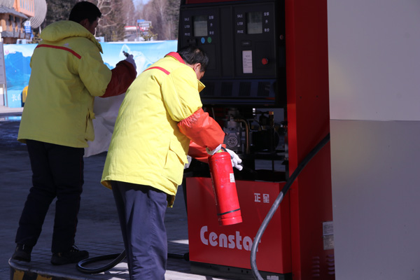 2018年3月20日,長(zhǎng)白山春季防火期開(kāi)始之際,長(zhǎng)白山北景區(qū)加油站組織員工開(kāi)展消防應(yīng)急演練。