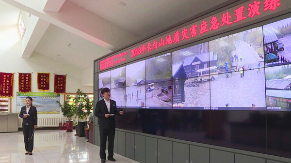 首先,講解員向參加觀摩的各位領(lǐng)導(dǎo)介紹此次演練目的、參加觀摩單位、參演人員及物資情況。隨后,演練現(xiàn)場總指揮,股份公司景區(qū)運營部、天池企業(yè)管理公司總經(jīng)理孫青春,一邊通過手中的對講機下達命令,指揮演練進行,一邊與現(xiàn)場兩位講解員通過監(jiān)視屏幕為觀摩團解說演練內(nèi)容。