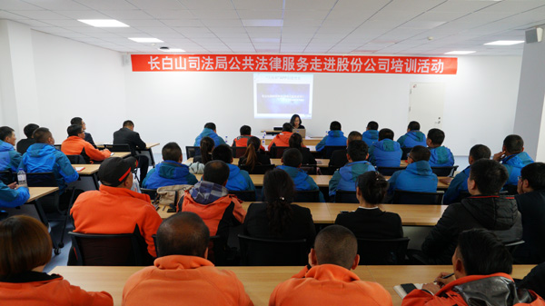10月18日下午,公司邀請(qǐng)長(zhǎng)白山司法局法律糾紛調(diào)解中心王主任以及吉林省法律援助中心楊律師在公司三樓會(huì)議室開展了公共法律服務(wù)“天池和”APP宣傳講解培訓(xùn)以及如何處理應(yīng)對(duì)突發(fā)暴力事件。景區(qū)一體化各部門經(jīng)理、班組長(zhǎng)、投訴處理人員,以及旅行社、酒店和溫泉相關(guān)人員,共80余人參加培訓(xùn)活動(dòng)。