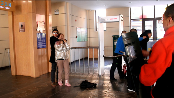 演練模擬兩名“暴恐分子”出現(xiàn)在池西游客服務(wù)中心,安檢員發(fā)現(xiàn)險(xiǎn)情第一時(shí)間上報(bào),并迅速啟動(dòng)反恐防暴應(yīng)急預(yù)案,同時(shí)向公安機(jī)關(guān)報(bào)警,全面進(jìn)入應(yīng)急狀態(tài)。